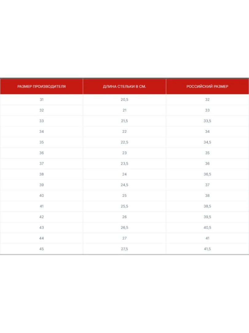 - Таблица размеров