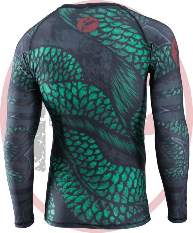 Комфортная модель рашгарда для занятий ММА и другими видами единоборств. Плотно обтягивает тело. Легкая ткань не ощущается на теле, удерживает тепло, отводит пот и защищает спортсмена от загрязнений при падении на мат. Специальные плоские швы не раздражают кожу спортсмена. Рисунок сублимирован в ткань, что гарантирует его сохранность после стирки.