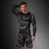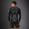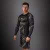 Рашгард Venum Matupa с длинным рукавом — это продвинутый компрессионный рашгард в премиальном стиле, созданный специально для борьбы в партере и интенсивных тренировок. Он плотно облегает тело, работает как вторая кожа и помогает спортсмену чувствовать уверенность в каждом движении, независимо от темпа и формата спарринга. Компрессионная посадка рашгарда поддерживает мышцы, улучшает ощущение контроля над телом и способствует более быстрому разогреву перед тренировкой. Материал приятно тянется во всех направлениях, не сковывая амплитуду движений в захватах, проходах в ноги, скремблах и борьбе у сетки. Даже при плотном контакте с партнёром и частых сменах позиций ткань не мешает, не собирается складками и не доставляет дискомфорта. Главная функция модели — защита кожи. Плотная, но «дышащая» техническая ткань помогает избежать ссадин, царапин и характерных «матовых ожогов» при работе на ковре или татами. Длинный рукав закрывает руки до запястья, минимизируя открытые участки кожи, которые обычно страдают при борьбе на земле. При этом материал остаётся воздухопроницаемым: излишнее тепло и влага выводятся, а тело сохраняет комфортную температуру даже во время тяжёлых раундов. Особое внимание уделено прочности. Усиленные плоские швы выдерживают растяжение, рывки и частые стирки, не лопаются и не натирают кожу. Техническая ткань устойчива к зацепам и трению об мат, гильотины, гард и постоянную работу в клинче. Этот рашгард рассчитан на регулярные тренировки по BJJ, грэпплингу, MMA и функциональному тренингу — он создан, чтобы работать в условиях максимальной нагрузки. Цветовая схема Black/Grey/Gold подчёркивает фирменный стиль Venum: тёмная база, контрастные серые элементы и благородные золотые акценты создают агрессивный, но в то же время аккуратный и премиальный образ. Графика и логотипы выполнены так, чтобы сохранять насыщенность цвета и чёткость линий в течение долгого времени.