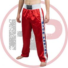 Брюки Green Hill из атласного полиэстра используются для кикбоксинга. Широкая резинка в поясе + шнурок. Не сковывают движений. Конструкция брюк позволяет наносить удары ногами без каких-либо неудобств. В таких брюках разрешено выступать на соревнованиях. Цвет брюк определяется углом, в котором выступает спортсмен.